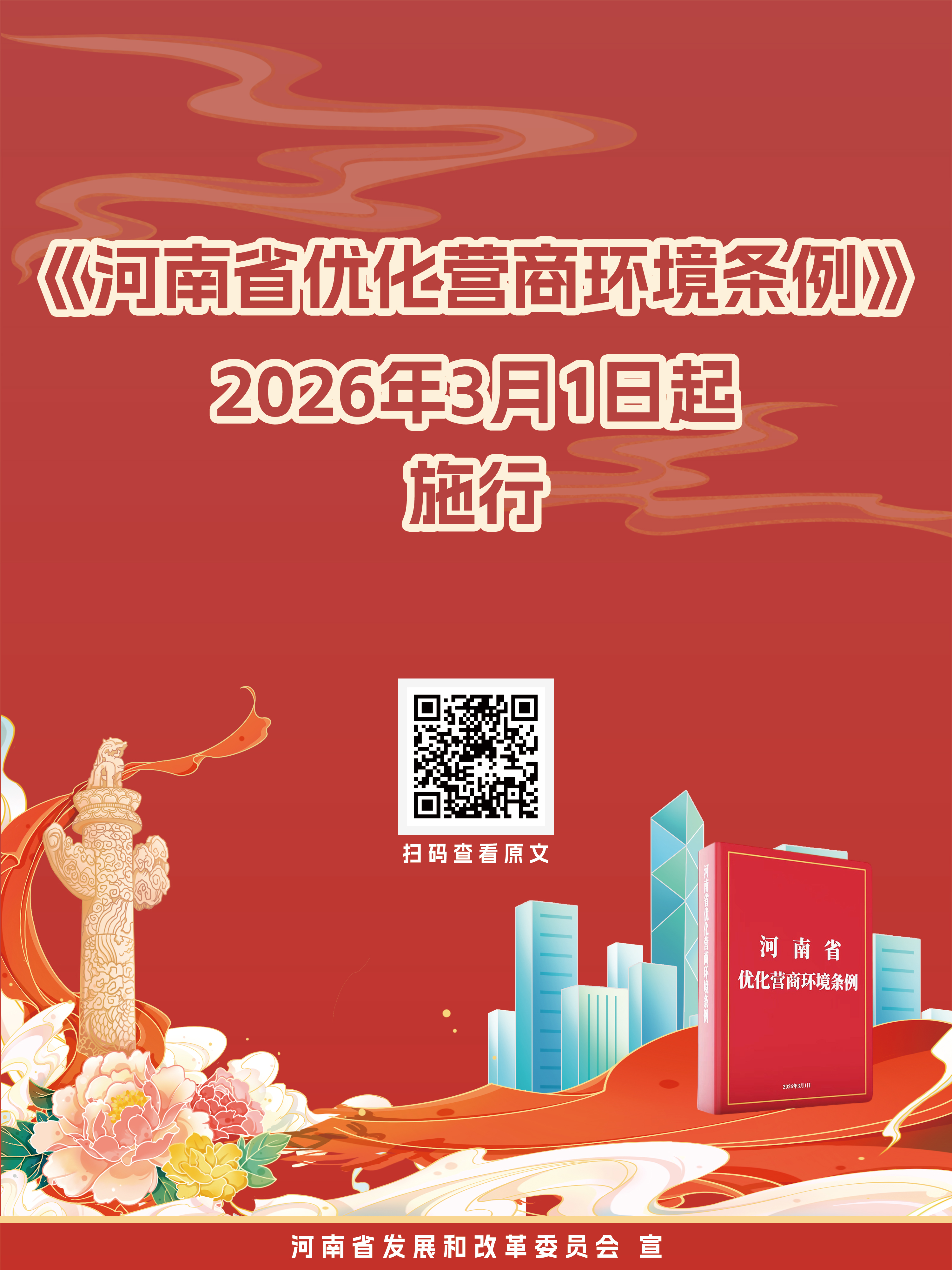 《河南省优化营商环境条例》已由河南省第十四届人民代表大会常务委员会第二十一次会议于2025年12月4日通过,现予公布,自2026年3月1日起施行。