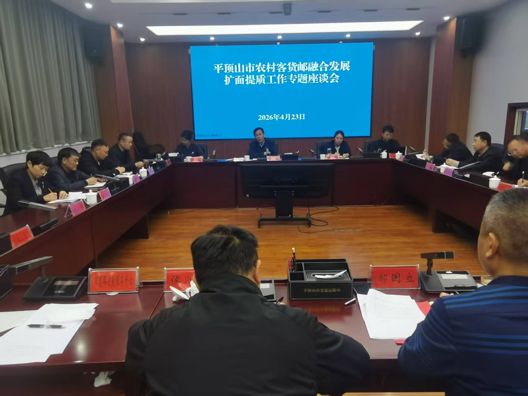 2026年4月22日至4月23日,省交通运输厅农村客货邮融合发展扩面提质工作调研组一行4人到我市调研指导工作。调研组先后来到舞钢市、叶县实地查看了解农村客货邮融合发展扩面提质工作进展情况,并于4月23日上午在市交通运输局召开了专题座谈会。市交通运输局党组成员、副局长、邮政管理局局长郝国立,党组成员、总工程师侯则行,市道路运输服务中心、局运输管理科负责同志,市邮政公司及六县(市)交通运输局、道路运输服务中心主要负责同志参加了座谈会。